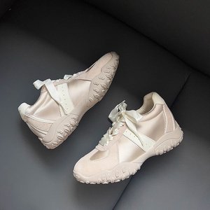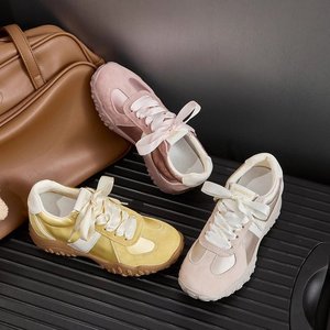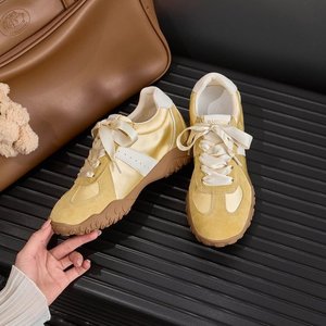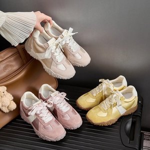韩系复古拼色系带德训鞋女2025春季新款百搭舒适运动休闲阿甘鞋潮