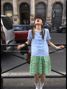 MONA 100棉 蝴蝶结设计黑白蓝色短袖t恤上衣女小个子2025夏季新款