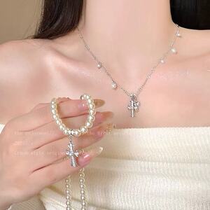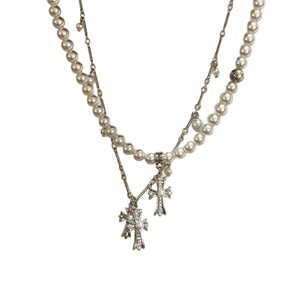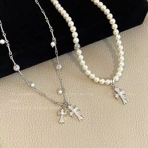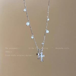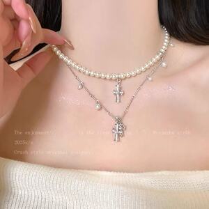 跨境欧美珍珠十字架叠戴项链女2025年新款甜酷小众设计感珍珠项链