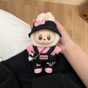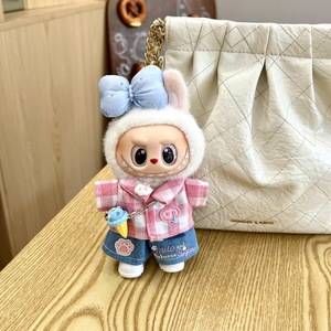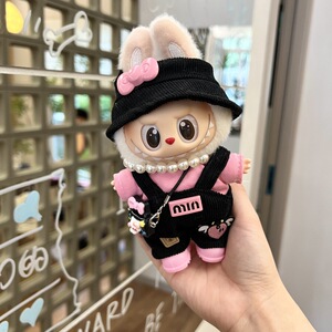 【仅衣服】一二三代拉布布搪胶公仔娃衣配饰粉色蝴蝶结miu背带裤