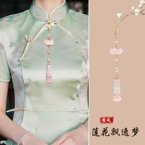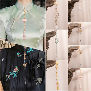 古代スタイルのチャイナドレスアクセサリータッセル蝶蓮漢服胸飾り手作りペンダント中国風ブローチギフト女性のための