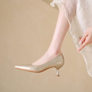 绝美小高跟鞋女款2025夏季新款细跟气质高级不累脚浅口单鞋宴会鞋