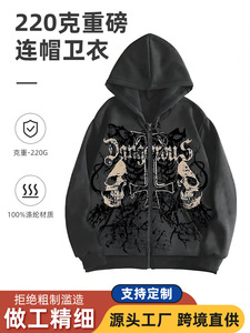 跨境新款连帽卫衣外套美式重磅男式休闲宽松复古女式拉链连帽衫