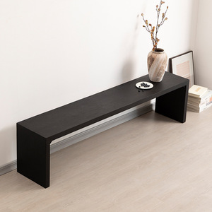 北欧实木长条凳黑色家用餐桌现代服装店换鞋凳长凳胡桃色原木凳子