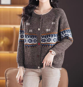 ニットカーディガン女性の 2025 秋と冬の新しい大きいサイズルーズ西洋スタイルジャカードショートジャケット女性のセータートップ