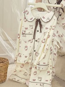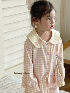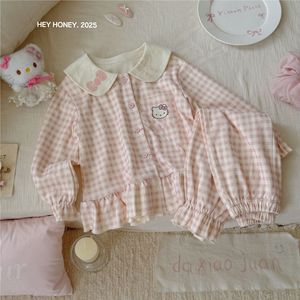 大小ロール女の子パジャマセット春と秋クラス A 純綿女の子ハローキティ漫画カーディガンホーム服