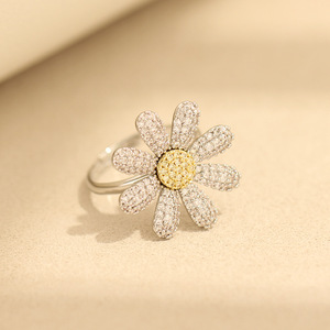 GD同款镶石小雏菊戒指开口镀金可调节明星同款食指戒女款戒子手饰