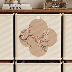 梅绽春信麻感方盒收纳箱(本白