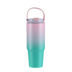 厂家直供30oz渐变色提手杯便携车载真空保温杯大容量保冷冰霸杯
