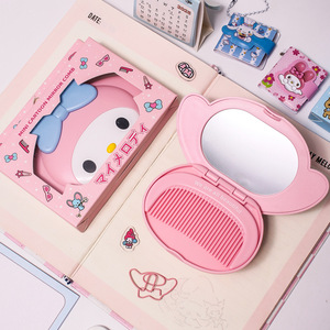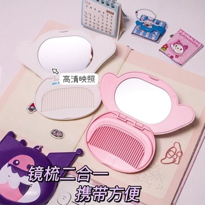 高颜值少女心化妆梳镜二合一小镜子套装卡通可爱折叠便携随身包包