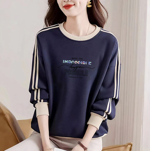 外贸出口剪标正品纯棉长袖拼色卫衣女春秋款时尚百搭休闲印花上衣
