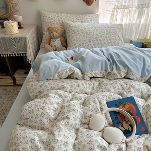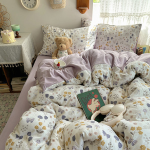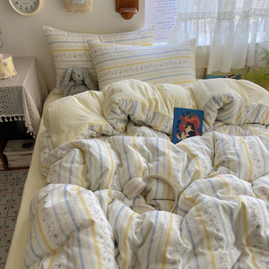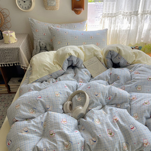 スーパーソフトクラスA母子グレード洗浄綿4点セットイン純綿小さな新鮮なベッドシーツとキルトカバー学生寮3点セット