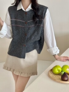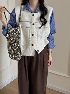 复古无袖开衫针织马甲背心女秋冬新款宽松圆领叠穿毛衣马夹上衣潮