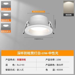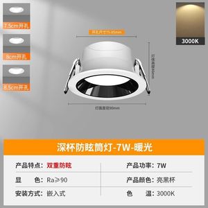 深防眩晕筒灯嵌入式天花洞灯暗装客厅过道简灯开孔7.5公分8 8.5cm