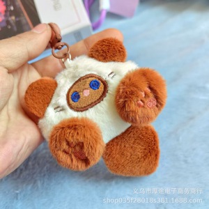 新款卡通长尾巴猫毛绒公仔钥匙扣玩偶包包挂件领结帕恰狗书包挂饰
