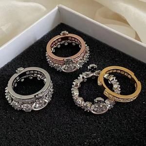 【直播货源】西太后土星星球满钻镶嵌镀金开口戒指双层闪钻土星戒