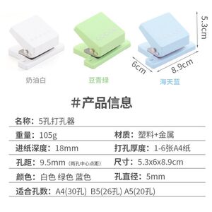 新款打孔机高颜值 迷你5孔打孔器学生文具打孔办公小型手动纸活页