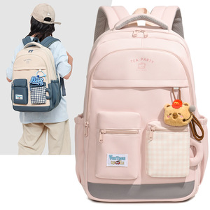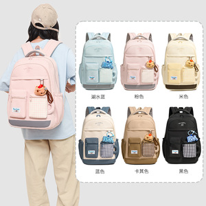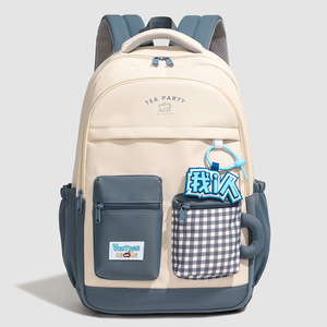 韩系ins风大容量撞色双肩包女小学生初中生高中生书包多隔层背包