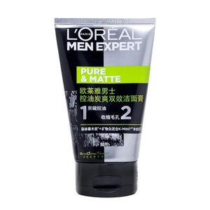 欧来莱雅男士洁面控油炭爽水能润泽双效劲能深层净化100ml洗面奶