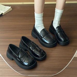スイートローファー、光沢のある厚底、2025年新作ファッショナブルな小さな革靴、背が低い人向けの厚いヒールのプラットフォームシューズ、シングルシューズ