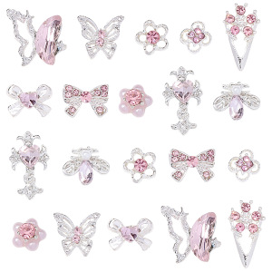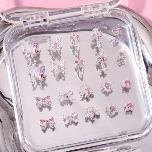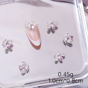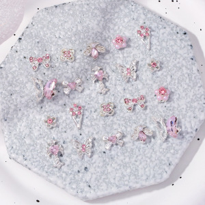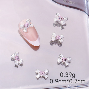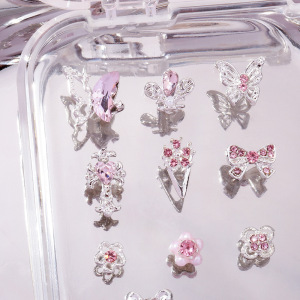 爆款蝴蝶结美甲饰品轻奢少女粉钻合金十字架爱心钥匙指甲装饰配件