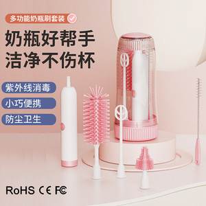 跨境新款电动奶瓶刷家用便携硅胶紫外线消毒防水水杯清洁刷奶嘴刷