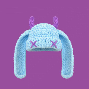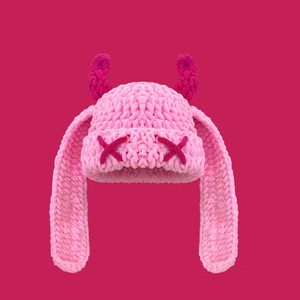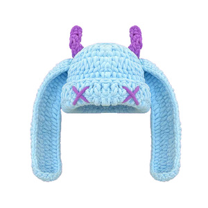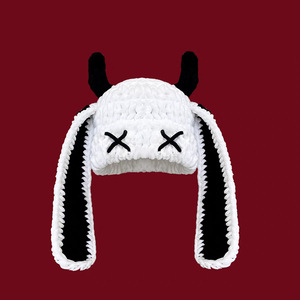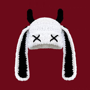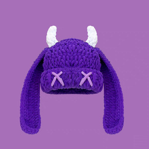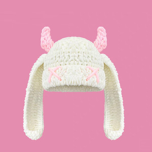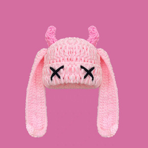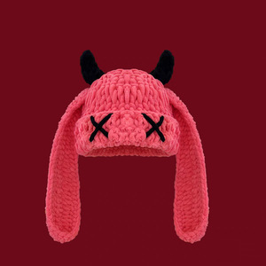 秋冬の女性用の可愛くて面白い小悪魔の長い耳ニット帽、暖かく耳を保護する手作りのホーンプルオーバーウール帽子
