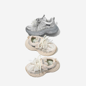女童鞋子儿童运动鞋2025秋季新款网面透气中大童珍珠蝴蝶结老爹鞋
