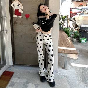 批发假日感时尚单品波点主义轻松舒适微喇休闲裤加长常规