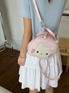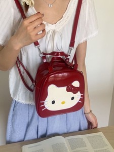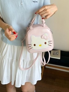漫画かわいい KT 猫バックパック pu テクスチャハンドバッグバッグショルダーバッグ女性の多用途キャンパススタイル学生スクールバッグ