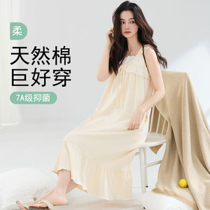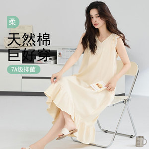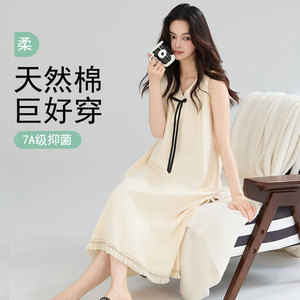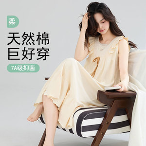 A类抗菌纯棉睡裙女士夏季背心无袖少女可外穿大码全棉睡衣家居服