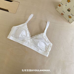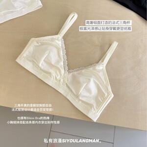 法式三角杯内衣女夏季薄款光面蕾丝提拉兔耳朵无痕文胸罩聚拢透气