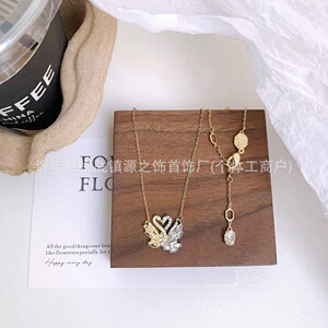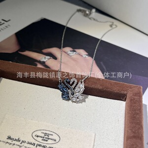 施家高版跨境拥抱天鹅项链女百搭小众双天鹅吊坠精致高级感锁骨链