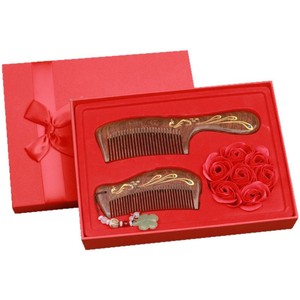 金丝檀木梳-彩绘孔雀翎-2件套装礼盒高档玫瑰花包装