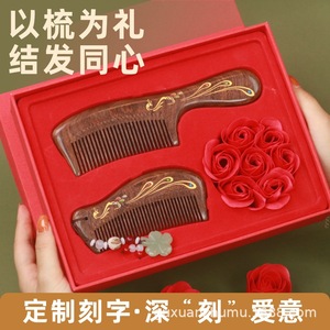 高档黑金檀木梳子套装礼盒现货批发可印logo刻字教师节礼品伴手礼