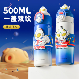 奥特曼保温杯新款316不锈钢儿童便携吸管水杯小学生上学专用水壶