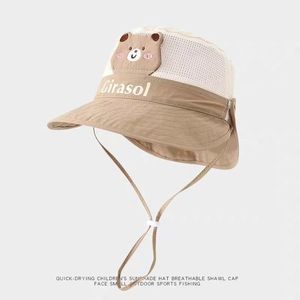 婴儿帽子夏季遮阳帽渔夫帽男童女宝宝网大檐可拆披肩儿童透气速干