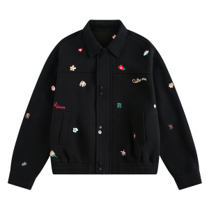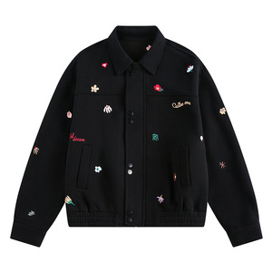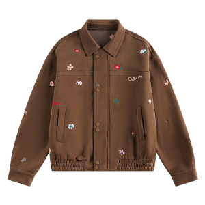 美式复古趣味花卉刺绣翻领棒球服夹克男女慵懒风情侣2025新品外套