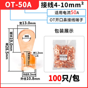 OT开口鼻 OT-100A纯紫铜T3全新料铜带 接线铜鼻子 铜接头线耳端子