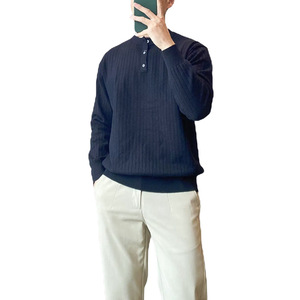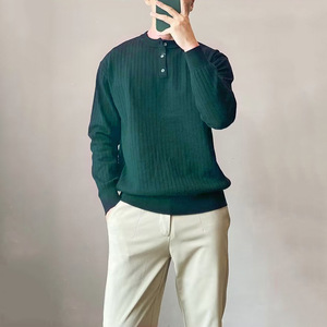 跨境爆款欧码大码长袖针织衫毛衣男亨利领门筒领轻奢商务工厂批发