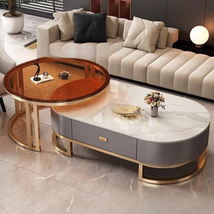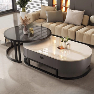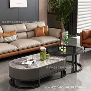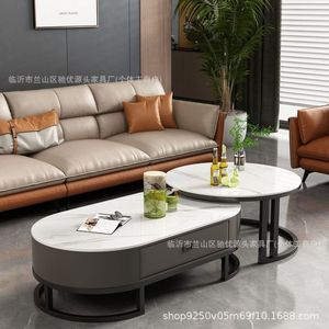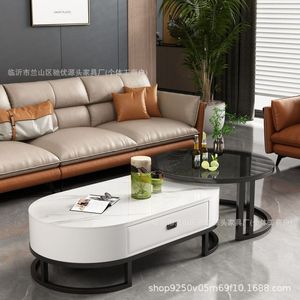 スレートコーヒーテーブルリビングルームホームライト高級モダンシンプルな小さなアパートティーテーブルラウンド2025新しいティーネットレッドコーヒーテーブル