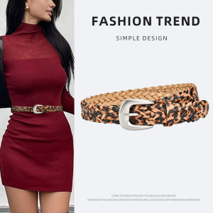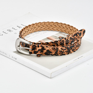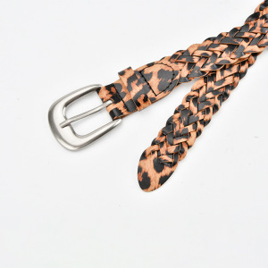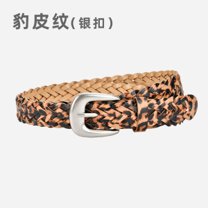 跨境豹皮纹编织皮带女士针扣时尚欧美百搭牛仔裤带潮流个性女腰带