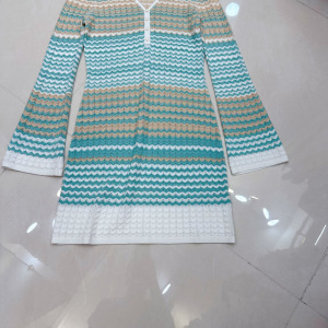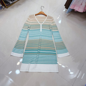 十三行澳洲法式小众纽扣装饰v领条纹撞色显瘦针织裙连衣裙A2#8161