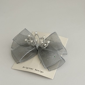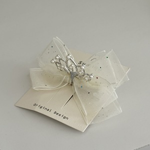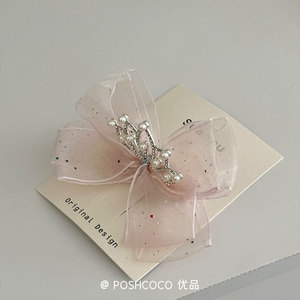 高级感网纱皇冠儿童蝴蝶结公主头饰女童宝宝生日发卡顶夹鸭嘴夹子