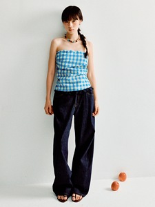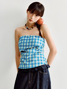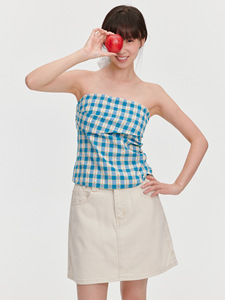 复古蓝白格子吊带背心2025夏度假风修身显瘦抹胸上衣