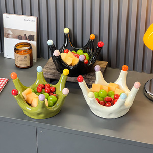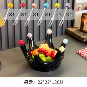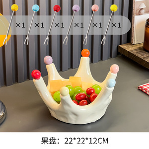 果盘客厅家用茶几陶瓷水果盘糖果干果盘零食摆放盘不锈钢水果叉子