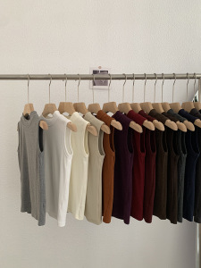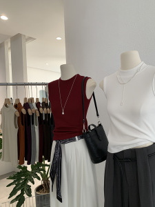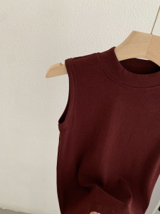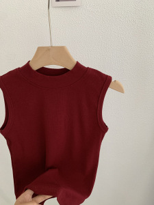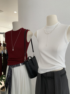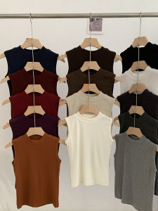 欧玛莱 半高领无袖气质背心女外穿早秋新款内搭修身打底上衣 4146