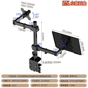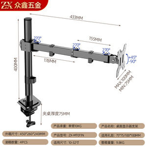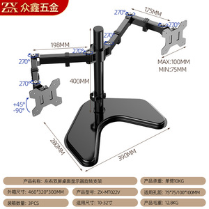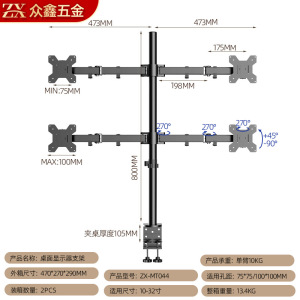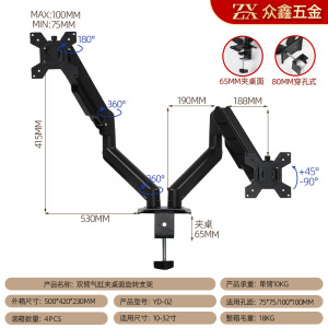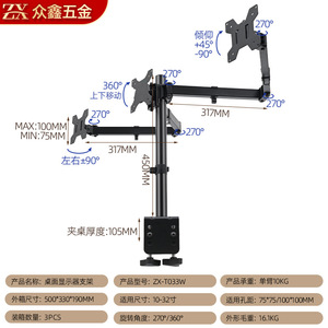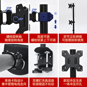 桌面显示器支架10-32"旋转双屏挂架机械臂升降悬臂办公桌电脑支架