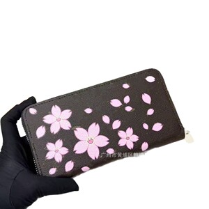 真皮女包长款拉链钱包跨境新款笑脸樱花钱包收纳包多卡位卡夹钱夹