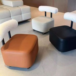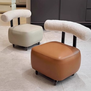家用溜溜凳简约换鞋凳靠背沙发滑轮凳子客厅万向轮旋转矮凳实木